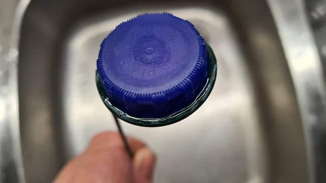 - Falls Sie keine Watte haben (Sie können auch ein Tuch verwenden), nehmen Sie einen PET-Flaschenverschluss und füllen Sie etwas Lösung hinein